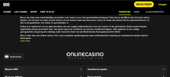 Nee. Spelers onder de 24 jaar mogen in Nederland geen welkomstbonus ontvangen, ook niet bij 888 Casino.