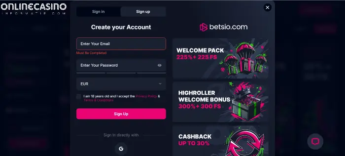 Hoe werkt aanmelden bij Betsio Casino?