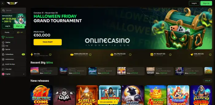 Holyluck Casino verwelkomt je met een glimlach. De kleurrijke mascotte knipoogt vanaf het scherm en zet meteen de toon voor een lichte, opgewekte sfeer. Alles aan de site ademt plezier, zonder dat het ooit kinderlijk wordt.