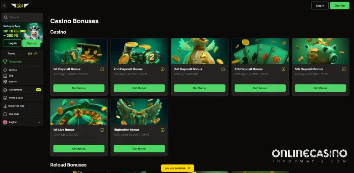 Nieuwe spelers krijgen een welkomstpakket tot zesduizend euro en driehonderd free spins. Er zijn ook bonussen voor live spelers en highrollers.