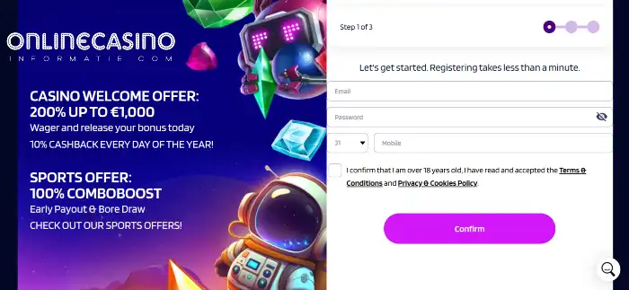 Alles voelt overzichtelijk en prettig in gebruik, ook als je voor het eerst een account aanmaakt. Het casino biedt vooral veel keuze in gokkasten, aangevuld met tafelspellen en een live casino.